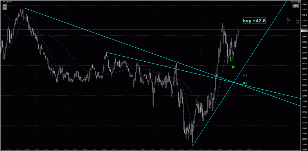 そんなことを書いているうちに、ちょうど良いエントリータイミングが来たのでゴールドのロングをしてみました。