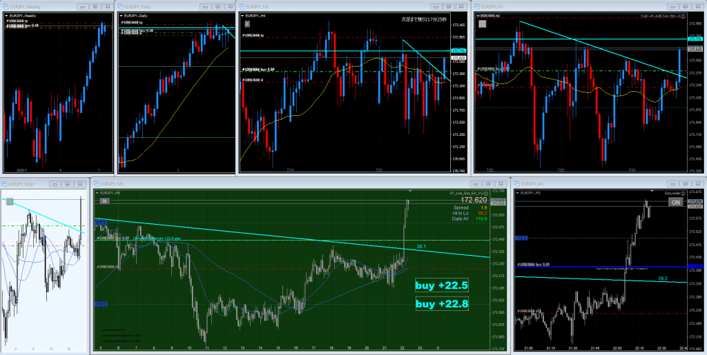 ユーロ円のロングをして利益確定できました。ですが自分の中ではダメトレード。理由は最後に。