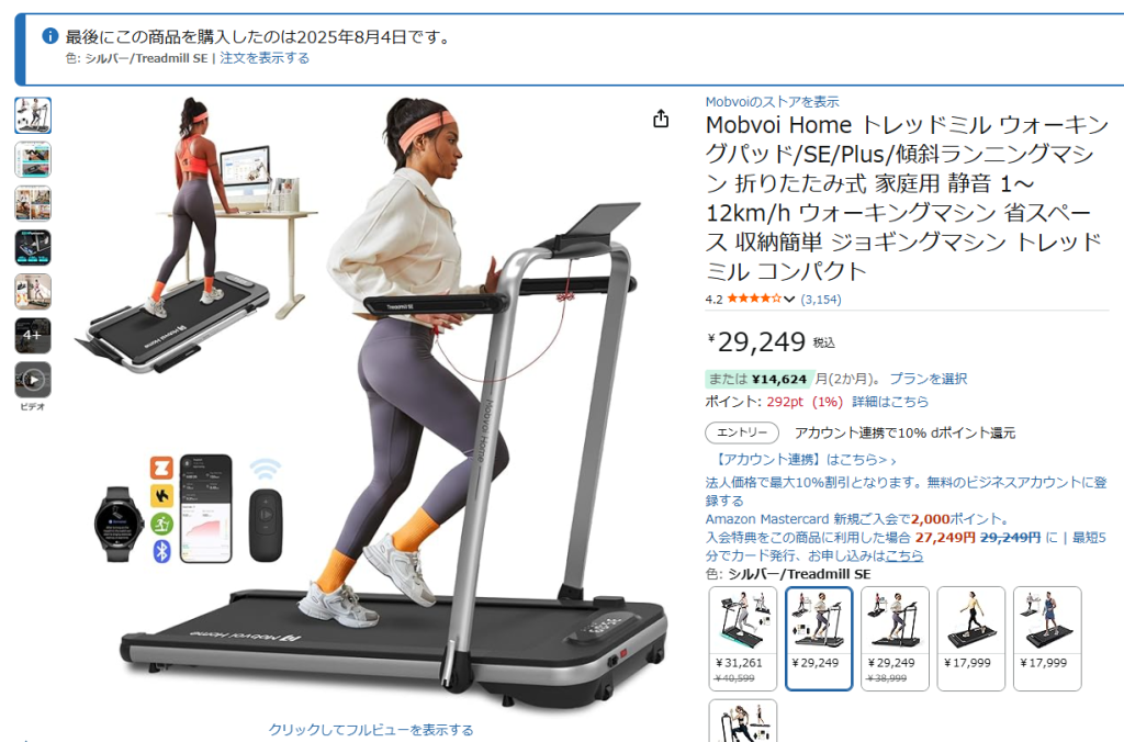それなら外でランニングすればいいじゃないか、という声も聞こえてきそうですが、夏は外が暑いし冬は寒いし、音声聞きながら動画を見ながら効率的に運動したいと思ったんですよね。ということでAmazonでランニングマシンを早速ポチってみました。