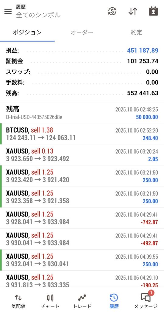 コツコツと少額から増やした複数口座を「もっと一気に増やしてやろう!」と意気込んで普段取引しない時間外の取引しかも仮眠から目覚めたばかりで頭がボケボケしている状態でのエントリー・・・1日で76万円を溶かすという失態を犯しました笑